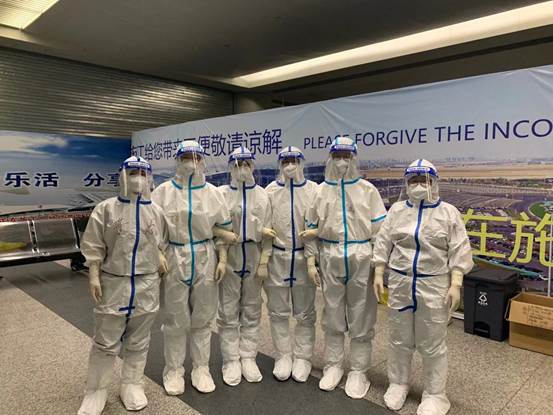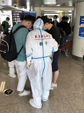 betway中国西汉姆联师生抗疫翻译志愿者天津机场工作照