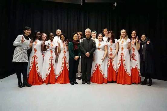 刘建梅老师(左七)带领孔院大学中文合唱团