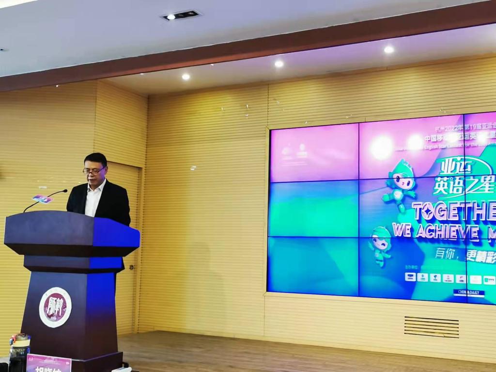 中国日报社21世纪英语教育传媒天津站周中明站长对晋级选手表示祝贺。他表示,“中国移动杯亚运英语之星”大赛为广大青年学子提供一个自由发声,勇敢逐梦的舞台;语言服务是亚运会组委会提供的重要赛事服务之一,同时肩负着讲好亚运故事,讲好中国故事,奏响中国最强音的重任。他希望天津师大发挥语言优势,大力弘扬奥林匹克精神,展示青年的精神风貌和责任担当,共同为举办一届精彩纷呈的亚运会贡献智慧和力量。