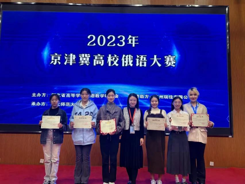 2023年10月21-22日,第六届京津冀俄语大赛在河北师范大学顺利举办。本次大赛我院俄语系共选派六名选手参赛,由刘娜老师担任参赛选手指导和带队教师。经过笔试、口试等环节的激烈角逐,我院学子取得了优异成绩。2022级范雪莹和2021级阿依沙拉·木巴拉克分别荣获低年级组二等奖和高年级组三等奖的优异成绩!来自2021级的李鲁娜获演讲单项赛二等奖,2021级迟佳宁和2022级崔家玮、郭若璇三位同学荣获演讲单项赛优秀奖。