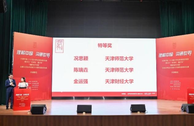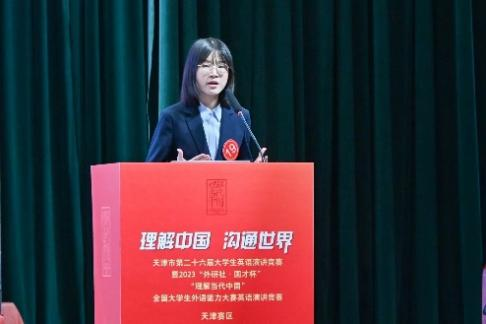 近日,由天津市教委主办、天津大学承办的2023“外研社·国才杯”“理解当代中国”全国大学生外语能力大赛落下帷幕。我院学生况思颖、陈瑞垚在演讲决赛中表现出色,分别获得特等奖第一名和第二名,创造了我校在该项赛事上的最佳成绩和新的纪录,来自我院的况思颖、陈瑞垚、喻可心、萧海棠、董钰姗、刘嘉文六位同学将代表天津市参加四个赛项的全国总决赛。