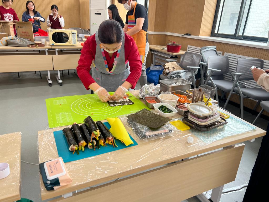 本次大赛吸引了学院中外教师参加,参赛教师结合各国文化、专业背景、饮食习惯等,现场制作不同国家美食。从色香味俱佳的中式菜肴,到精致可口的法式甜点,再到香辣诱人的韩国料理,一道道美食令人目不暇接,味蕾大开,比赛现场气氛热烈。现场观众被各国美食吸引,纷纷驻足品尝,评委们从色、香、味、形、意等多个方面对参赛作品进行打分。