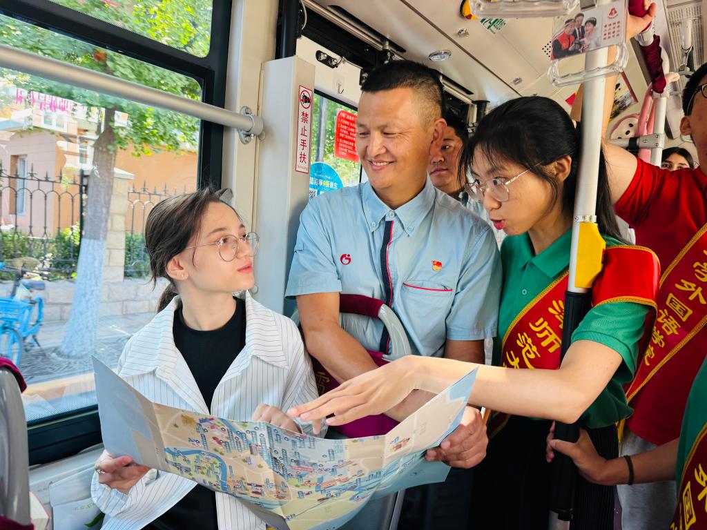 头等舱承载津门文化传承,多语种融合现代国际文明。9月16日上午,必威西汉姆的外籍留学生走进市公交集团第二客运有限公司体北中心车队,乘坐天津首部“文明有礼号”公交车,开展了一场沉浸式探索天津街区文化的游学之旅。来自betway中国西汉姆联“用英语讲中国故事”“讲好天津故事”的宣讲团成员用多语种讲述天津故事,展现天津魅力,为提升中华文化国际影响力,促进文化交流与融合展现青春力量。