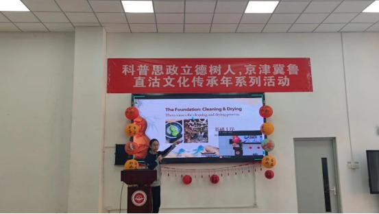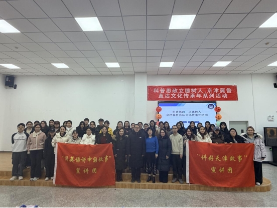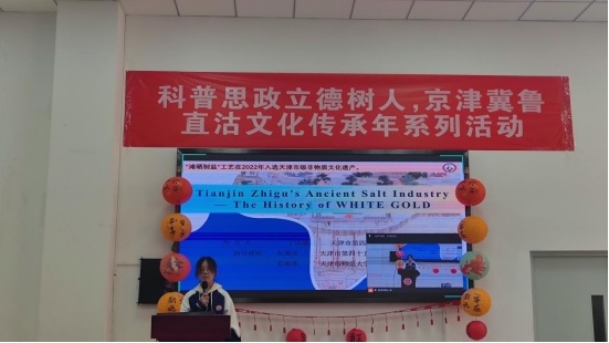 在河东区直沽非遗展示环节,由学院师范专业学生指导的“用英语讲中国故事”系列作品成为亮点。学院师范生通过参与指导,既在真实教学情境中展示了育人成果,也在实践中检验和修正指导方法,形成教学反思,同时沉浸式了解中学学情,深入思考学科融合教学方法的改革方向,有效提升了综合素质。这是学院推进大中小学思政一体化建设的积极探索,也是师范生培养模式的一次生动实践。