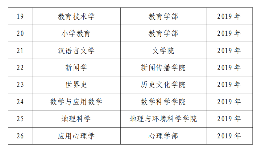 学校高度重视此项工作,抢抓机遇,上下一心,群策群力,扎实推进,下大力气落实“立德树人,以本为本,四个回归”,着力深化教育教学改革,精心修订新的教学大纲,完善“三全育人”体系,建立标准建设机制,巩固人才培养中心地位,在专业方向凝练定位、师资队伍建设、人才培养改革、教学内容更新、教学规范管理、教研活动开展等方面持续下苦功,一流本科建设取得突出成效,实现了四个全覆盖:学校所有学科门类一流本科专业建设点全覆盖;学校承担本科生培养的专业学部(院)一流本科专业建设点全覆盖;政治与行政学院、心理学部、文学院、法学院等4个专业学部(院),国家级一流本科专业建设点全覆盖;面向基础教育主选科目专业国家级一流本科专业建设点全覆盖。