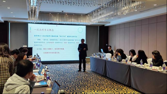 中国韩国(朝鲜)语教育研究学会会长,广东外语外贸大学全永根教授作为会议特邀嘉宾,以“一流本科建设要建设什么”、“一流本科专业是什么”为引,拉开了本次研讨会的序幕。他指出目前高校的一流专业建设标准和理念,介绍广东外语外贸大学的师资队伍建设和教学资源,并提出教育的“五大要素”中应该以学生为关键、以教师为核心,推动高校把教育教学改革成果落实到课程建设当中。全永根教授以本专业线上课程资源共享模式为实例,倡导微课共享、多人备课、多人共享,鼓励教师不仅要有资源共享的意识,更要落实在行动中。