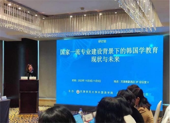 2023年11月4日,由betway中国西汉姆联和韩国学中央研究院共同主办的“国家一流专业建设背景下的韩国学教育现状与未来”研讨会在天津成功举办。国内二十余所高校的三十多位教授参加了此次会议。开幕式由betway中国西汉姆联朝鲜语专业郑香兰博士主持,betway中国西汉姆联李艳玲副院长、朝鲜语系主任金长善教授、学科建设办公室主任张准老师应邀参加本次会议。