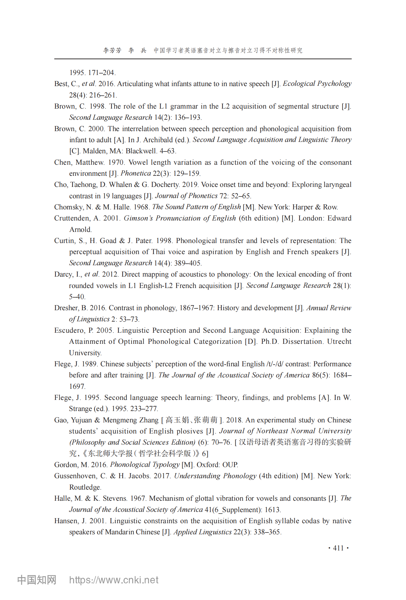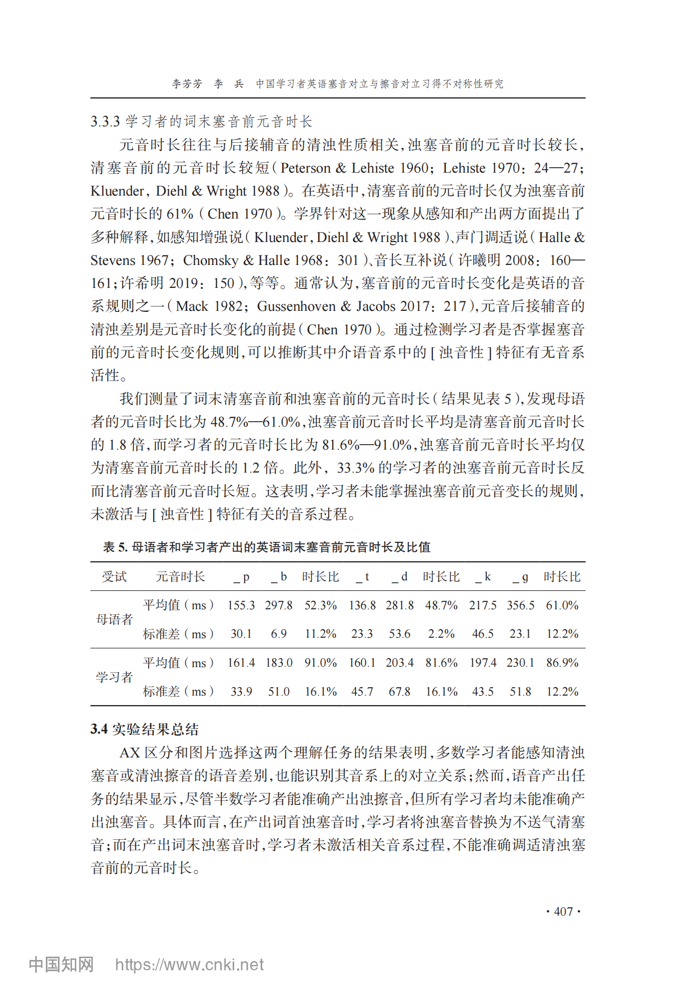 参考引用格式:李芳芳,李兵.中国学习者英语塞音对立与擦音对立习得不对称性研究[J].外语教学与研究,2025,57(03):400-413.DOI:10.19923/j.cnki.fltr.2025.03.010.