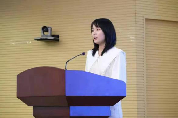 英语翻译1703班、国家奖学金获得者田一茜同学作为宣讲团代表,在演讲中为大家分享了丰富的学习经验。提起大学四年取得的优异成绩,她不忘感恩:“教育部为我们高校大学生设立的各种荣誉奖项体现了党和政府对青年大学生的关心和爱护,也代表着国家和社会对青年大学生的鼓励与期待。”恰逢党的百年华诞,她说道:“我们更应该肩负起伟大的历史使命,主动承担起实现中国梦的时代重任,在奋斗中释放青春激情,追逐青春理想,以青春之我、奋斗之我为祖国的建设贡献自己的一份力量!”