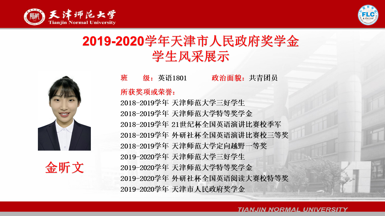 2019-2020学年天津市人民政府奖学金获得者——金昕文