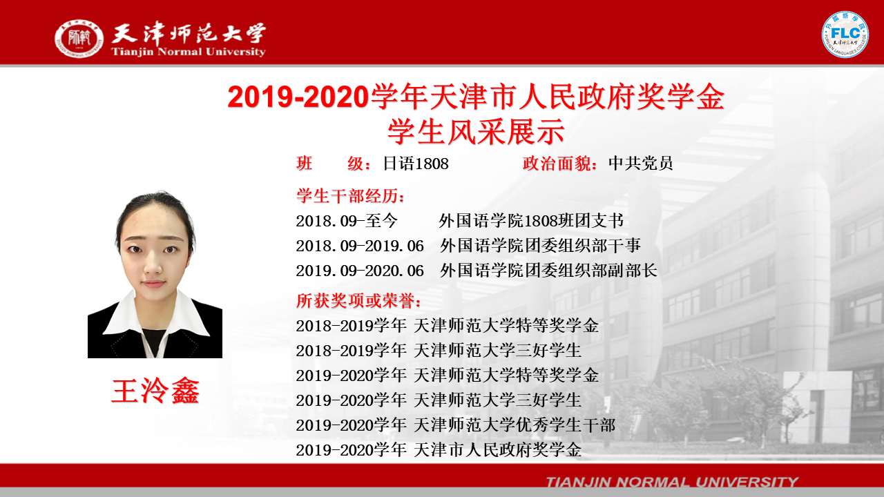 2019-2020学年天津市人民政府奖学金获得者——王泠鑫