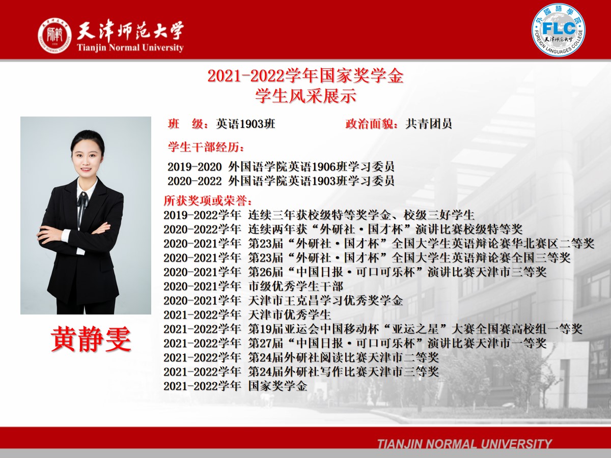 2021-2022学年国家奖学金获得者——黄静雯