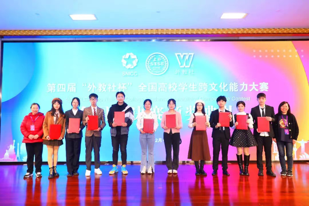 2月26日至27日,第四届“外教社杯”全国高校学生跨文化能力大赛全国总决赛在上海举行。本次总决赛有来自北京、上海、天津、江苏、浙江、安徽、湖南、广东、云南、河南、甘肃和辽宁等省市共计30支参赛队伍参加(包含2支留学生团队)。我校19级世界史双语专业的刘思萌、20级行政管理专业的甘晨希,以及20级日语专业的刘馨怡三位同学组成的参赛团队荣获三等奖。